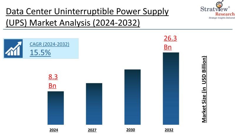 The data center UPS market is forecast to reach USD 26.3 billion by 2032 with a CAGR of 15.5% from 2024 to 2032.