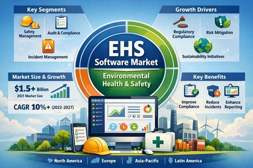 The Environmental Health and Safety (EHS) Software Market refers to the global industry focused on developing digital platforms that help organizations manage workplace safety, environmental compliance, and regulatory reporting. EHS software solutions enable companies to monitor occupational risks, track environmental performance, and ensure compliance with local and international regulations. These platforms typically include modules for incident management, risk assessment, audit management, chemical safety tracking, waste management, and compliance documentation. Organizations across industries such as manufacturing, energy, construction, healthcare, and chemicals use EHS software to maintain safe working conditions and reduce environmental impact.