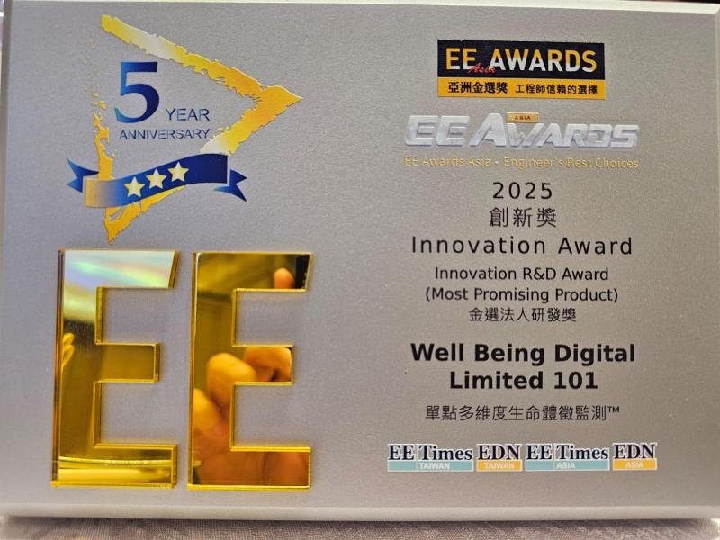 Well Being Digital (WBD101) is hence proud to announce that it has been awarded the 2025 Innovation R&D Award (Most Promising Product) for its breakthrough optical design solution, OpticalFusionTM, developed specifically for smart hearables. This proprietary technology enables earbuds to deliver highly accurate vital signs monitoring, including heart rate and SpO2, with unprecedented reliability. https://www.eettaiwan.com/webinars/ee_awards_live_20251205/