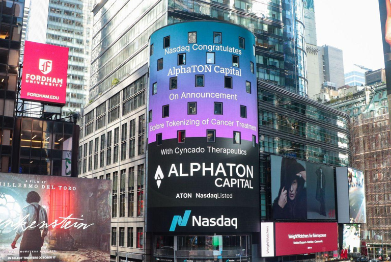 AlphaTON Capital (NASDAQ: ATON), a specialized digital asset treasury company focused on developing the TON and Telegram ecosystem, and new pioneer in blockchain-based healthcare financing, today announced that Nasdaq has publicly congratulated the company on its innovative approach to funding cancer research through asset tokenization. The recognition was displayed prominently on the iconic Nasdaq Tower in Times Square, marking a significant milestone in the convergence of digital assets and medical research funding.