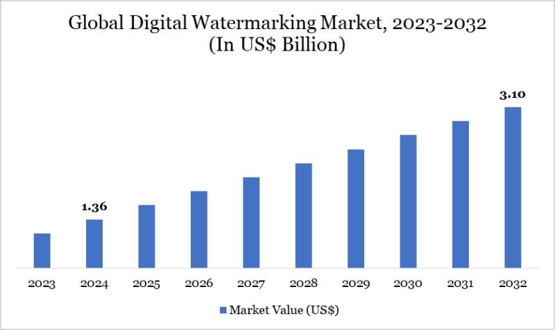 The Digital Watermarking Market reached USD 1.36 billion in 2024 and is expected to reach USD 3.10 billion by 2032, growing with a CAGR of 10.86% during the forecast period 2025-2032.