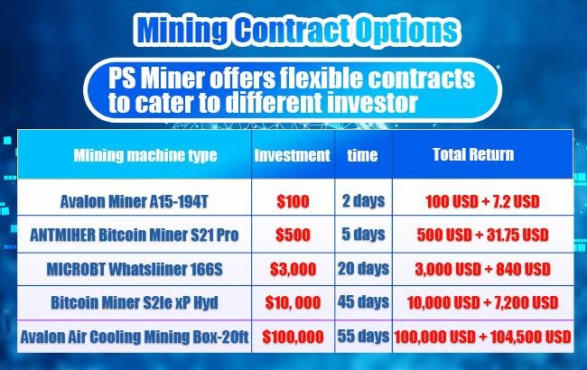 The existing contract levels include terms of 1 to 60 days, and are adjusted accordingly based on the scale of calculations and expected net income. For more details on cloud mining contracts, please visit: https://psminer.com/project
