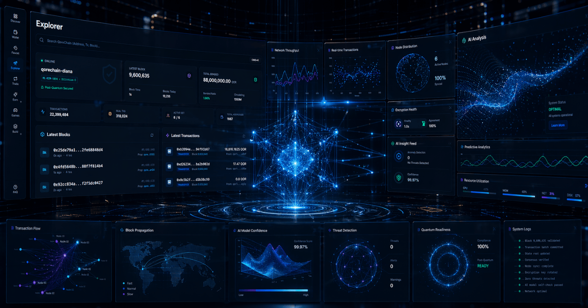 - The public explorer and validator dashboard are available at https://dashboard.qorechain.io.