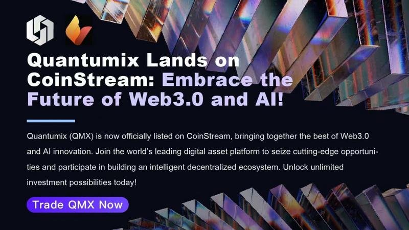 New York, NY, Dec. 02, 2024 (GLOBE NEWSWIRE) — Recently, the highly anticipated decentralized blockchain project Quantumix (QMX) officially launched on the globally recognized trading platform CoinStream. This collaboration is viewed as a powerful alliance in the industry, injecting strong momentum into the global development of the Quantumix project and providing investors with an excellent opportunity to participate in the innovative integration of Web 3.0 and artificial intelligence (AI).