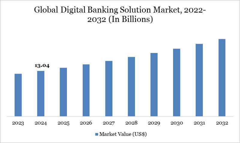A: By 2032, industry forecasts suggest the Digital banking solution Market will grow to around US$ 24.96 billion, demonstrating significant expansion.