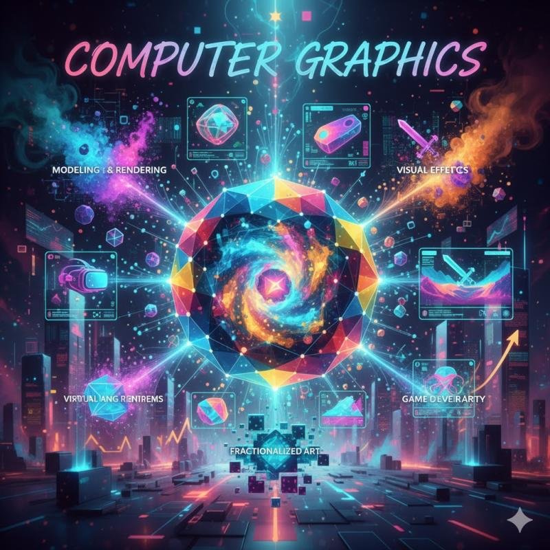 Computer Graphics refers to the creation, manipulation, and representation of visual content using computational techniques. It includes 2D and 3D modeling, rendering, animation, simulation, image processing, and visualization technologies. Modern computer graphics underpin industries such as gaming, film VFX, virtual reality, CAD/CAM, metaverse platforms, digital twins, medical imaging, and scientific visualization. The field integrates algorithms, hardware acceleration, shading models, ray tracing, rasterization, and GPU computing to generate high-fidelity visuals in real time. Innovations such as AI-based upscaling, physics-driven rendering, cloud graphics processing, and real-time global illumination have transformed graphics pipelines. Computer graphics also enable immersive environments for training, simulation, design prototyping, architecture, and interactive media. With advancements in GPUs, neural rendering, and graphics engines, computer graphics is becoming central to digital content creation, interactive experiences, and visualization-driven decision-making across commercial, industrial, and entertainment sectors.