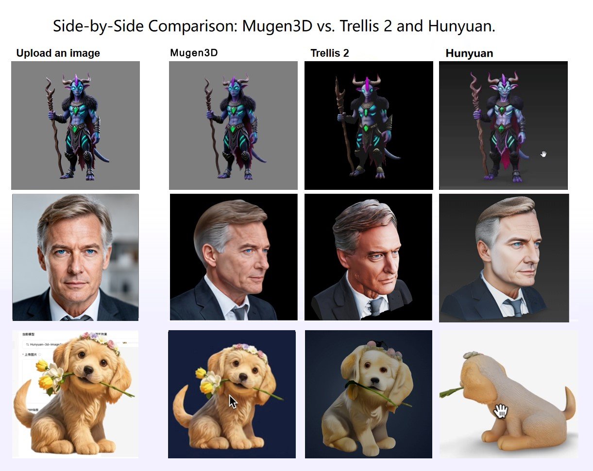 Mugen3D marks two pioneering breakthroughs in 3D generation: