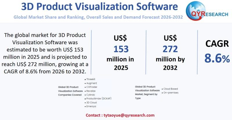 The global market for 3D Product Visualization Software was estimated to be worth US$ 153 million in 2025 and is projected to reach US$ 272 million, growing at a CAGR of 8.6% from 2026 to 2032.