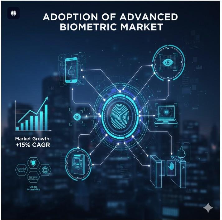 Definition: The Adoption of Advanced Biometric Market refers to the growing integration of biometric technologies such as fingerprint, facial, iris, voice, and behavioral recognition across industries for secure identification, authentication, and access control. Driven by rising concerns over data security, fraud prevention, and seamless digital experiences, the market is expanding in banking, government, healthcare, enterprise, and consumer electronics applications worldwide.