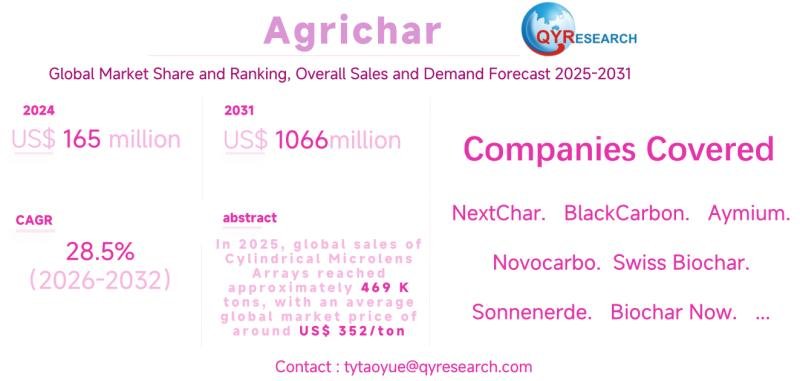 The global market for Agrichar was estimated to be worth US$ 165 million in 2025 and is projected to reach US$ 1066 million, growing at a CAGR of 28.5% from 2026 to 2032.