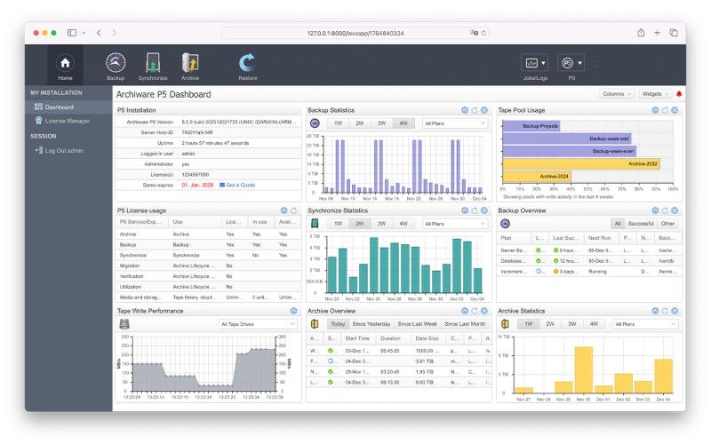 Archiware GmbH, expert in data management software, announces the release of version 8.0 of its P5 Data Management Platform. The update introduces a range of powerful new features designed to increase operational control and efficiency, including: