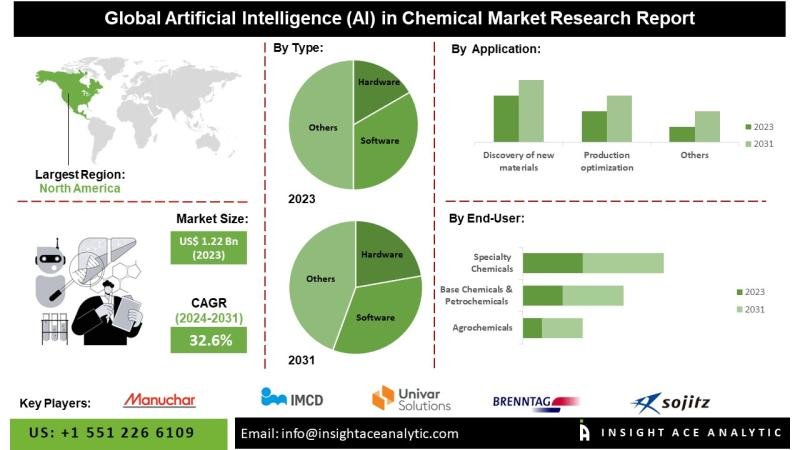 InsightAce Analytic Pvt. Ltd. announces the release of a market assessment report on the “Global Artificial Intelligence (AI) In Chemical Market Size, Share & Trends Analysis Report By Type (Hardware, Software, Services), By Application (Discovery of new materials, Production optimization, Pricing optimization, Load forecasting of raw materials, Product portfolio optimization, Feedstock optimization, Process management & control), By End User (Base Chemicals & Petrochemicals, Specialty Chemicals, Agrochemicals), Region, Market Outlook And Industry Analysis 2035”