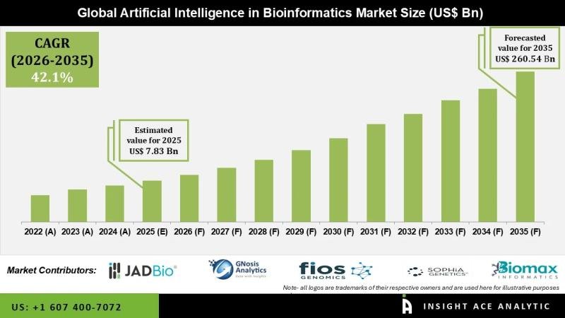 InsightAce Analytic Pvt. Ltd. announces the release of a market assessment report on the “Global Artificial Intelligence in Bioinformatics Market- (By Offering (Software, Services, Others), By Type (Machine Learning, Deep Learning and Others), By Products and Services (Knowledge Management Tools, Bioinformatics Platforms, Bioinformatic Services), By Application (Genomics, Microarrays, System Biology, Text Mining, Chemoinformatics & Drug Design, Proteomics, Transcriptomics, DNA Sequencing, Metabolomics, Others)), By Sector, By Region, Trends, Industry Competition Analysis, Revenue and Forecast To 2035.”