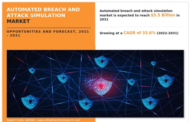 According to the report published by Allied Market Research, Automated Breach and Attack Simulation Market Share Witnessing a CAGR of 33.6% Estimated to Reach USD 5.5 Billion by 2031. The report offers a detailed analysis of changing market trends, top segments, key investment pockets, value chains, regional landscape, and competitive scenario.