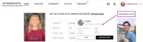 - Senior Match offers more browsing freedom