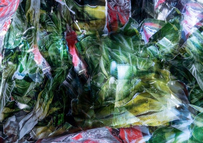 These questions animate projects such as Whose Grocery (2024), an installation of digitally distorted images printed on custom boxes. Here, Chen transforms the aesthetics of the convenience store, i.e., the everyday site of transaction and repetition, into a meditation on value, culture, and perception. Familiar packaging and imagery are stretched, blurred, fragmented, and reshaped. The result is both humorous and uncanny: consumer objects become vessels of displaced identity. The glossy tactility of Bokchoy 720 (2024), too, enacts a form of sensory estrangement: it renders the familiar unfamiliar, revealing how the digital gaze infiltrates even our perception of texture and touch. The vegetable, once a sign of nourishment, becomes an interface: something looked at rather than consumed. The title’s reference to “720”-a digital resolution-underscores this doubling of the intimate and the technological, the bodily and the coded.