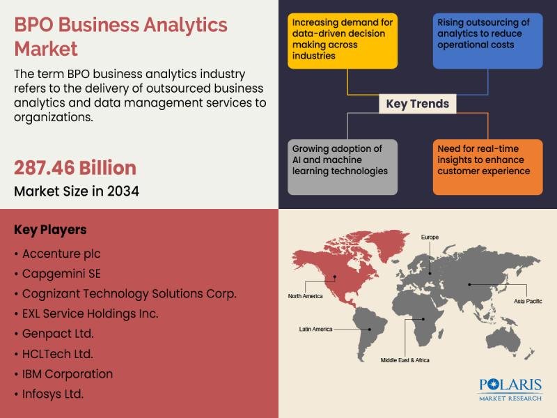 Polaris Market Research recently introduced the latest update on Bpo Business Analytics Market that provides an extensive outlook of the market, analyzing key growth opportunities, challenges, risk factors, and emerging trends across diverse geographic regions. The report offers a definitive and meticulous analysis of the Bpo Business Analytics Market size, share, demand, key growth factors, segmentation, country-level overview, and forecast.