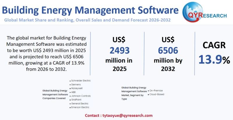 The global market for Building Energy Management Software was estimated to be worth US$ 2493 million in 2025 and is projected to reach US$ 6506 million, growing at a CAGR of 13.9% from 2026 to 2032.