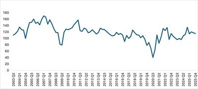 - The optimism for export orders fell by 3 percentage points in Q4 2025 compared to the previous quarter Q3 2025. Expectations remain subdued in professional and administrative services, and construction, while optimism is strong in chemicals, mining, and automotive sectors.