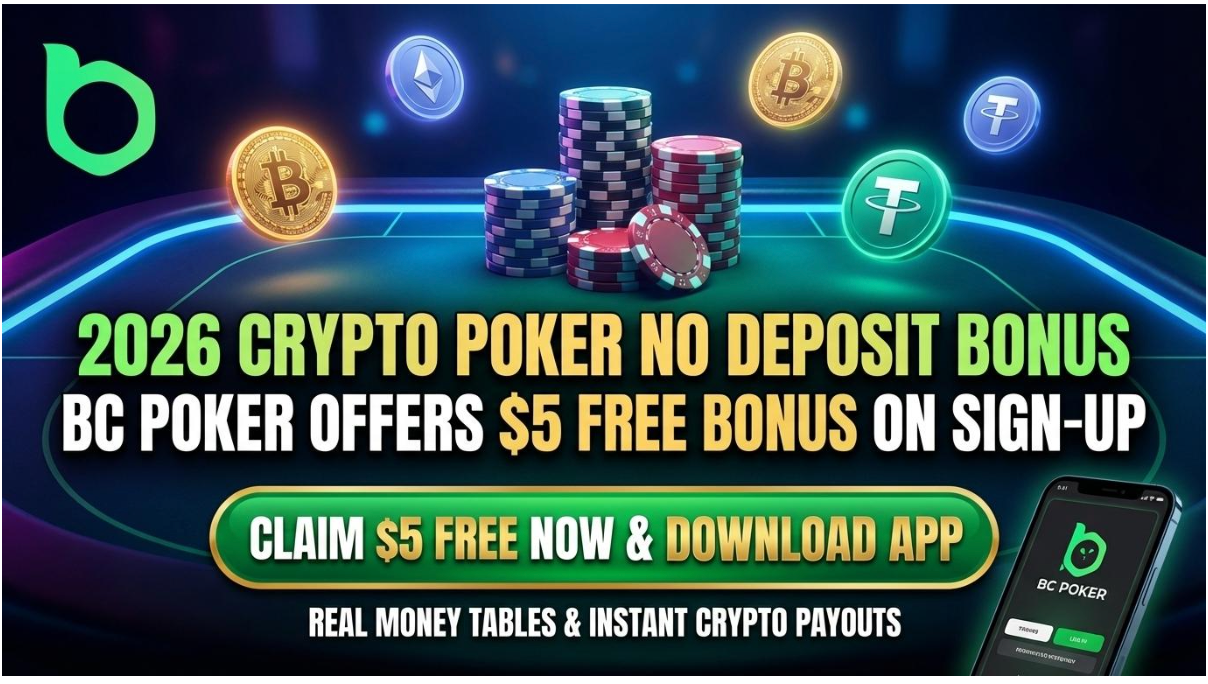 San Francisco, CA, March 29, 2026 (GLOBE NEWSWIRE) — As interest in crypto poker no deposit bonus offers continues to grow in 2026, players are becoming more careful about which platforms actually deliver on their promises. Many poker rooms advertise welcome rewards that come with unclear terms or limited game access, making it difficult for new players to get a fair start. As a result, attention is shifting toward crypto poker sites that combine transparent bonus structures with real gameplay value. BC Poker stands out by offering a $5 no deposit bonus for users who register and download the app, along with instant crypto withdrawals and a provably fair card-dealing system, giving players a risk-free way to try real-money poker before committing funds.