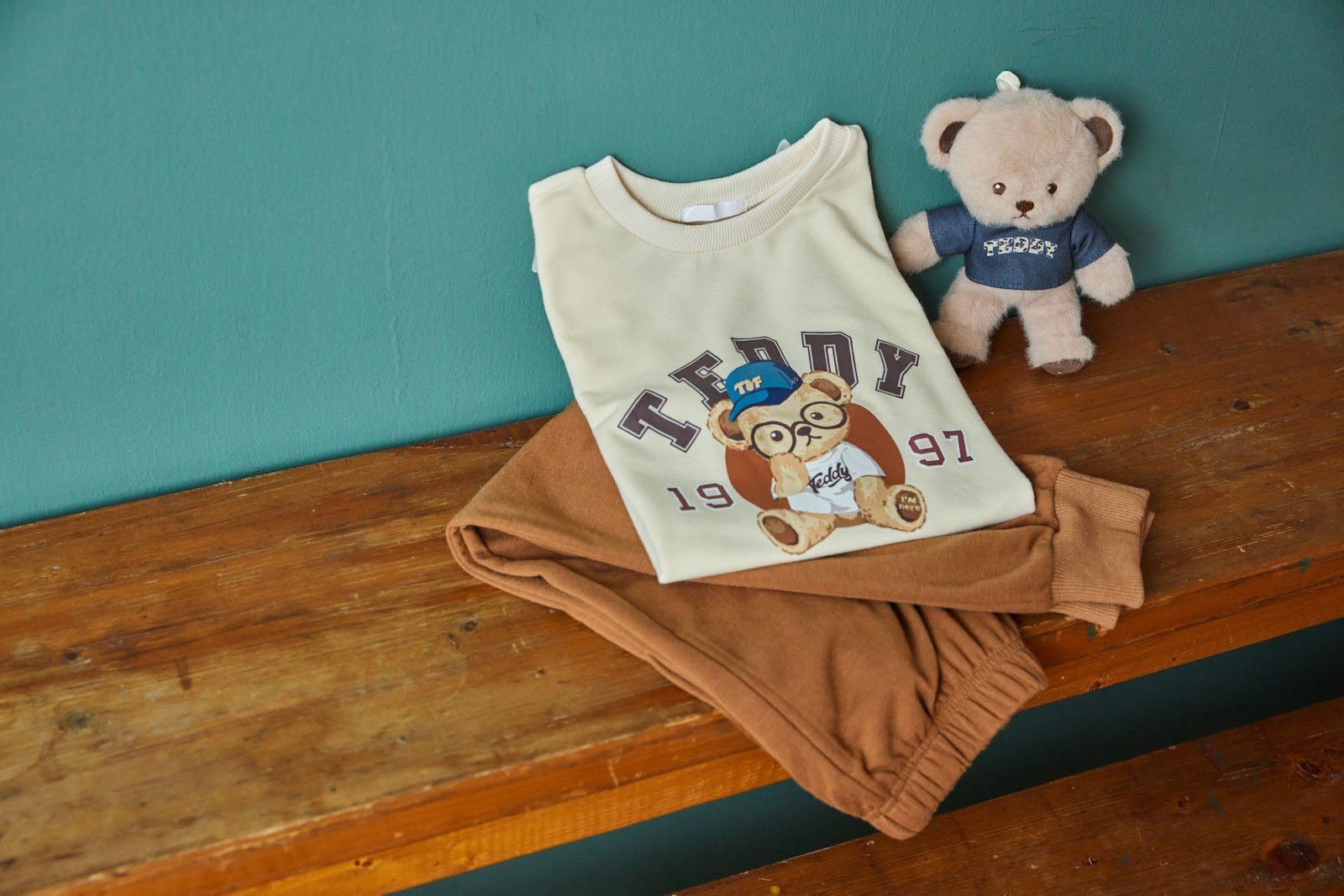 The campaign’s slogan—“LOVE TO SHARE, TEDDY’S HERE!”—quietly reinforces this balance. It frames the teddy not only as a source of private comfort but as a connector, a companion whose warmth is meant to be shared. This subtle shift matters: apparel is never just personal; it exists in the space between individual moments and social interaction. The brevity of the phrase makes it easy to remember, while its openness allows it to become part of daily life.