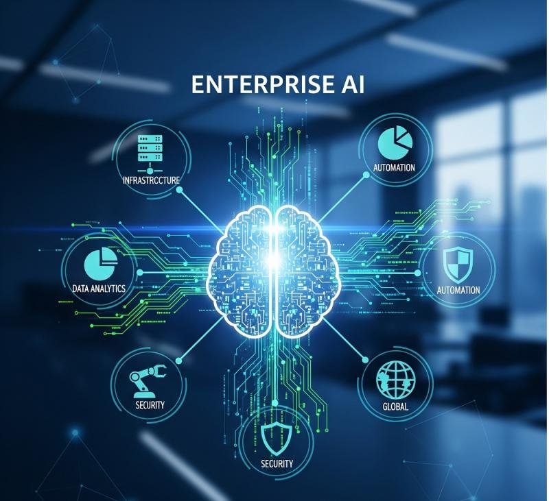 Enterprise AI refers to the deployment of artificial intelligence technologies within large organizations to enhance business processes, decision-making, and customer experiences. It involves integrating AI tools like machine learning, natural language processing, and computer vision across various enterprise functions such as supply chain, finance, marketing, and HR. Enterprise AI enables automation of routine tasks, predictive analytics, and personalized services, driving efficiency, innovation, and competitive advantage while ensuring data governance, security, and scalability in complex organizational environments.