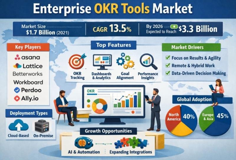 Definition: Enterprise OKR Tools are performance management platforms that help organizations set, track, and align Objectives and Key Results (OKRs). These tools promote goal transparency, accountability, and strategic alignment across teams. They provide dashboards, analytics, and progress tracking features. Enterprise-grade solutions integrate with HR, project management, and collaboration systems. The market is driven by digital transformation and agile business practices.