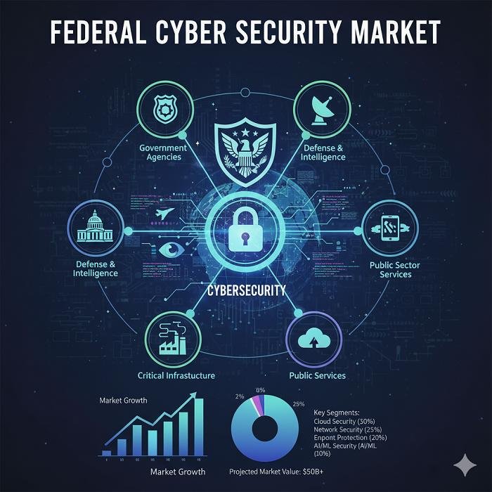 The federal cybersecurity market focuses on providing security solutions to government agencies, military, and critical infrastructure. It includes network, cloud, endpoint, and identity security solutions designed to protect against cyberattacks. Rising threats to federal IT systems, regulatory compliance needs, and the adoption of cloud services are driving growth. AI, threat intelligence, and zero-trust architectures are increasingly adopted to ensure national security and protect sensitive government data.