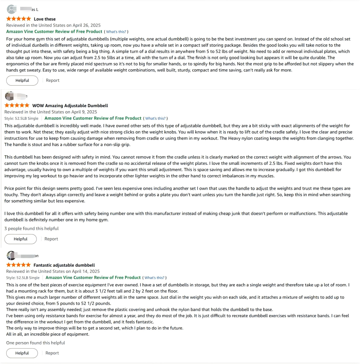 “I did also order BowFlex dumbbells before this… I’d say the quality between the two brands are about the same with this brand being slightly shorter, which is a good thing. I also like that they don’t take up much space and can be hidden away if I have guests over. All in all I really like them for the price point.”