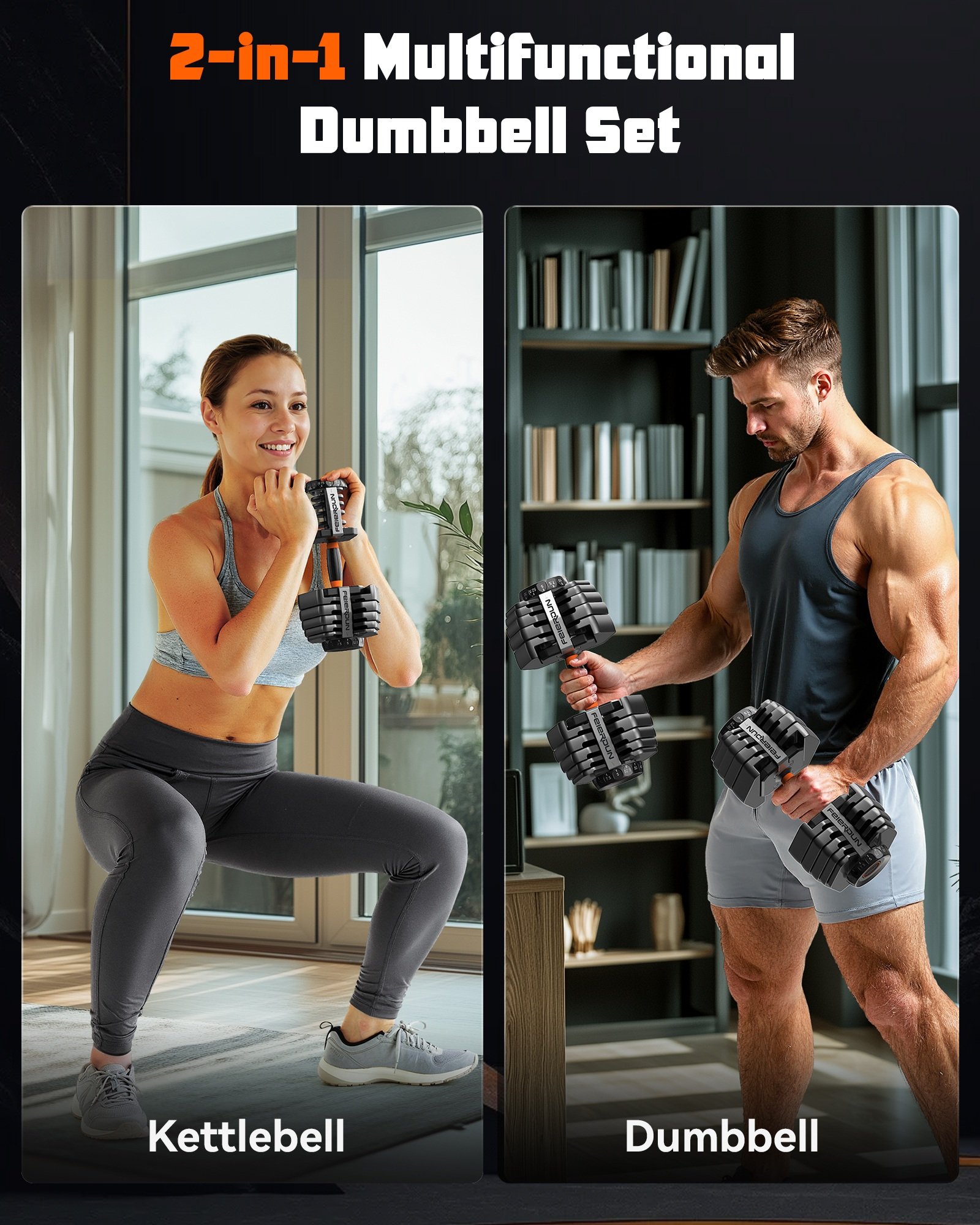 When working out at home, space and simplicity matter — but so does variety. That’s why the FEIERDUN adjustable dumbbell isn’t limited to just one function. With its 2-in-1 multifunctional design, it easily transitions from a traditional dumbbell to a kettlebell, giving users the freedom to train across multiple workout styles using a single piece of equipment.