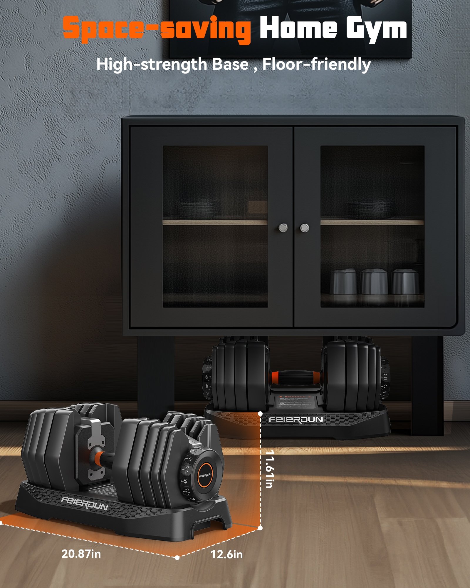 For home workouts, space is often the biggest challenge. The FEIERDUN adjustable dumbbell is designed with that in mind — compact, efficient, and easy to store. At just 16.2 inches long, it fits neatly into any corner, under a desk, or beside a bench, making it ideal for apartments, shared spaces, or multipurpose rooms.