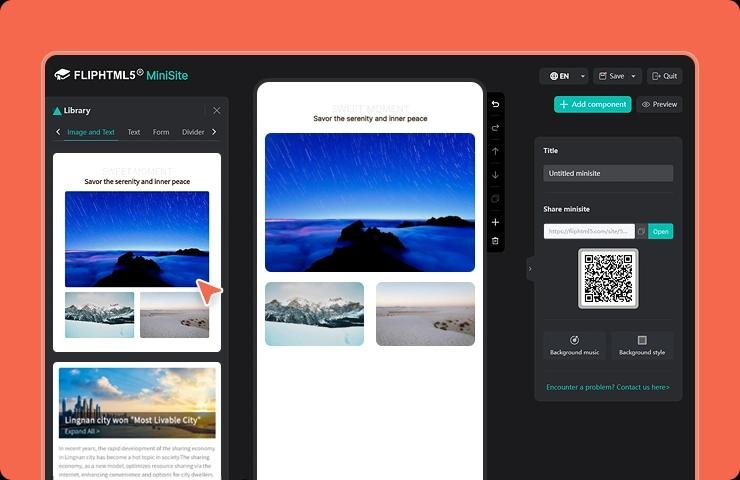 Companies often need to create a microsite rather than a website when they try to direct target customers’ attention to a product, campaign, or event. A microsite (also known as minisite) is typically designed for a particular purpose, such as introducing a brand, promoting a product, or reaching a specific audience. To empower users’ minisite creation, FlipHTML5 rolled out a free microsite builder (https://fliphtml5.com/features/minisite/) that doesn’t require any coding knowledge.