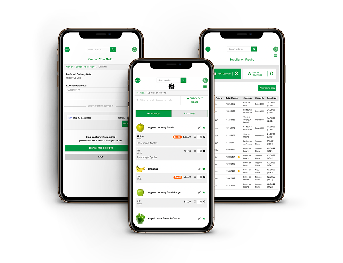Fresho is used by tens of thousands of chefs who simply reach for their device to choose exact quantities for their needs, much like an online shopping experience but specifically tailored to the fast paced B2B food industry. Buyers see live prices and specials, allowing for informed product choices and assistance in food cost management. Suppliers receive the order immediately in an easy-to-use dashboard, which reduces data entry and errors, and helps them fulfil orders without delay. The real time sales data enables suppliers to manage purchasing more efficiently and eliminates waste before it becomes an issue. See how it works here.