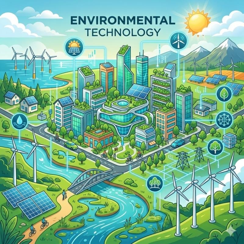 Environmental Technology (also known as Green Technology or Clean Technology) refers to the development and application of innovative tools, systems, and processes designed to reduce environmental impact, conserve natural resources, and promote sustainable development.