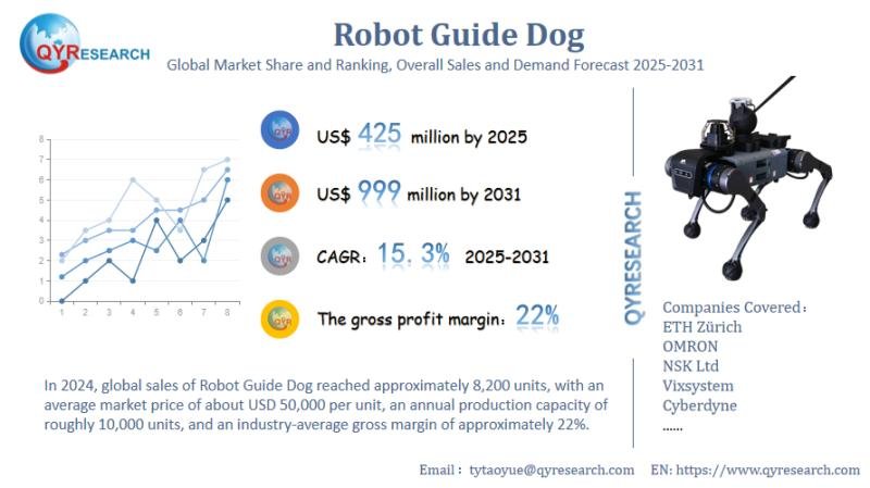 Global leading market research publisher QYResearch published the release of its latest report, “Robot Guide Dog – Global Market Share, Ranking, Sales, and Demand Forecast 2025-2031”. This in-depth report provides a complete analysis of the global Robot Guide Dog market, offering critical insights into market size, share, demand, industry development status, and future forecasts. Whether you’re a stakeholder, investor, or industry player, this report equips you with the data and strategies needed to stay ahead in a rapidly evolving market.