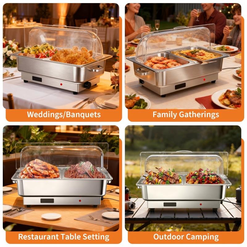 Holiday gatherings typically mean warm food on the table. The Garvee Chafing Dish makes hosting simple, elegant, and fuel-free with its electric heating system and adjustable temperature controls.