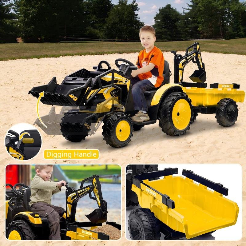 Its dual motors and 24V power system give kids the thrill of movement, while parents get the reassurance of remote control operation for added safety. From backyard digging adventures to pretend construction games, the tractor encourages creative thinking and physical activity in a way screens never could.