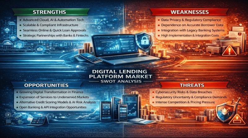Another major strength is the growing demand for digital financial services among consumers and businesses. Digital lending platforms enable financial institutions to provide seamless online experiences, including quick loan approvals and digital document verification. Strategic partnerships with banks, fintech firms, and payment providers further strengthen market positioning for leading companies.