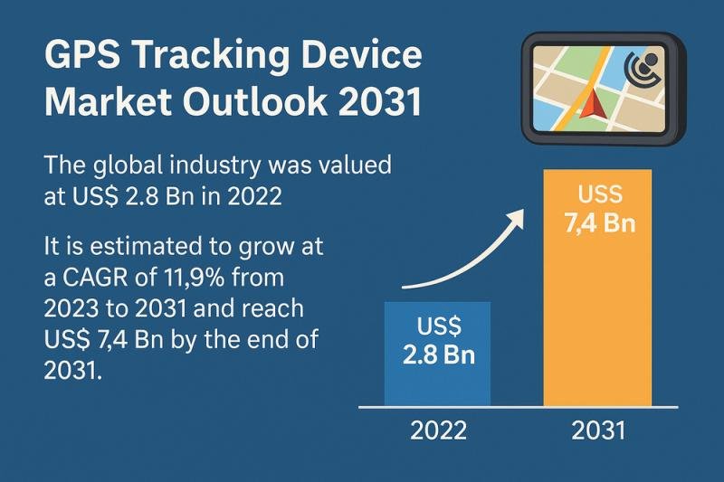 The global GPS tracking device market, valued at USD 2.8 Bn in 2022, is poised to reach USD 7.4 Bn by 2031, expanding at a robust CAGR of 11.9% from 2023 to 2031. Fueled by growing demand for commercial fleet tracking and personal safety, this market is seeing accelerated adoption across key sectors including transportation, logistics, defense, construction, and emergency services.
