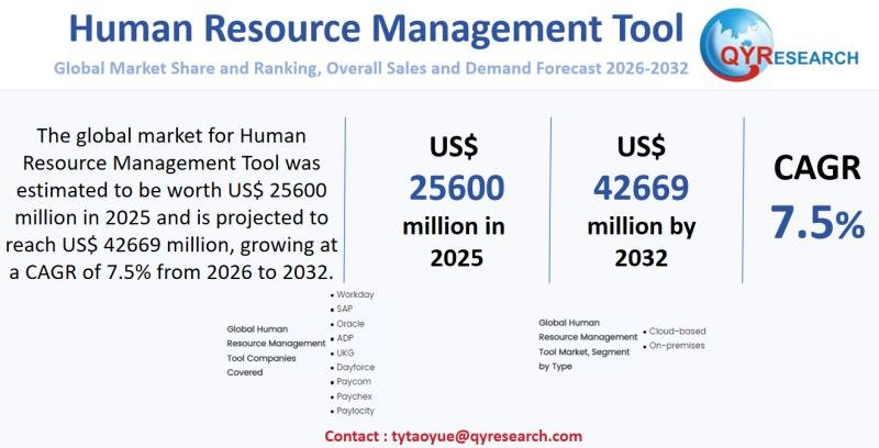 The global market for Human Resource Management Tool was estimated to be worth US$ 25600 million in 2025 and is projected to reach US$ 42669 million, growing at a CAGR of 7.5% from 2026 to 2032.