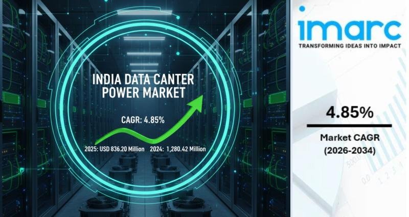 The India data center power market size was valued at USD 836.20 Million in 2025 and is projected to reach USD 1,280.42 Million by 2034, growing at a compound annual growth rate of 4.85% from 2026-2034.