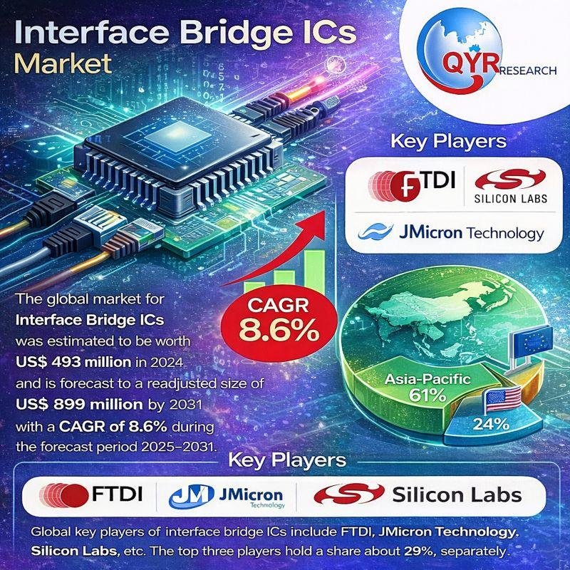 According to QY Research, the newly released report titled “Interface Bridge ICs Market Share and Ranking, Overall Sales and Demand Forecast 2025-2031” delivers a comprehensive, data-driven assessment of the global interface bridge ICs market. The study provides detailed insights into market size evolution, pricing trends, competitive structure, regional demand patterns, and future growth opportunities for semiconductor manufacturers, system designers, and technology investors.