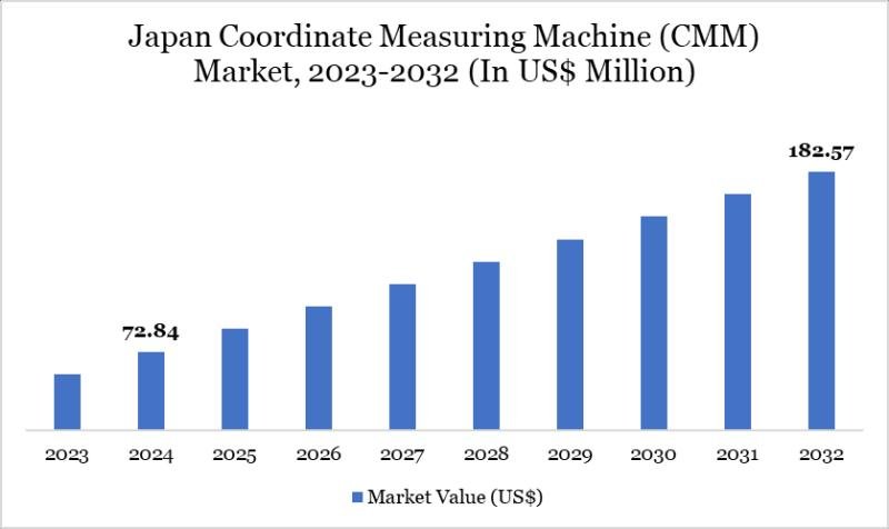 The Japan Coordinate Measuring Machine (CMM) Market reached US$ 72.84 million in 2024 and is expected to reach US$ 182.57 million by 2032, growing with a CAGR of 12.27% during the forecast period 2025-2032.