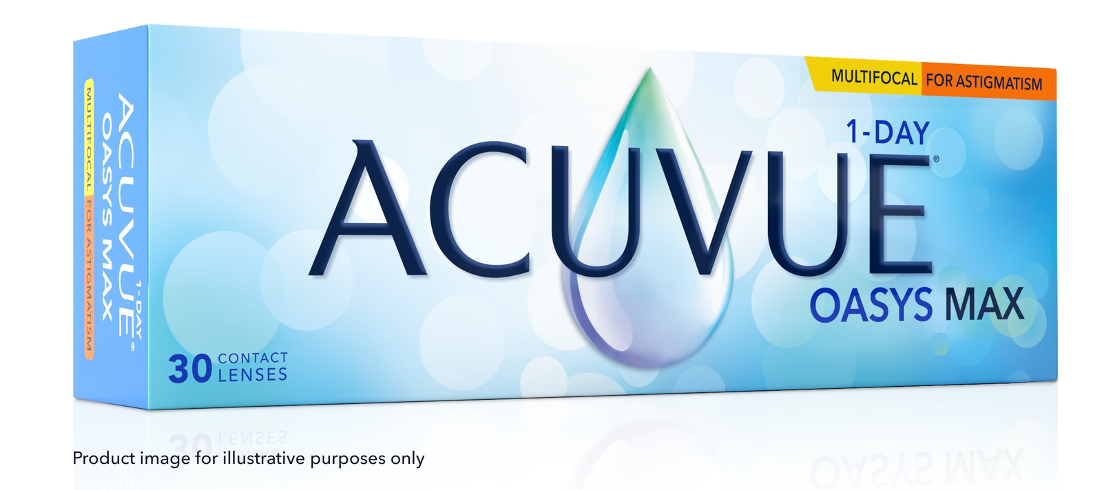 ACUVUE® OASYS MAX 1-Day MULTIFOCAL for ASTIGMATISM, 1-day ACUVUE®, ACUVUE® Oasys, ACUVUE® Vita, and ACUVUE®2 are trademarks of Johnson & Johnson.