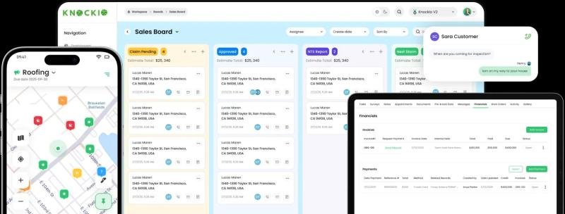 Businesses that sell first and then deliver service often suffer from broken handoffs: notes get lost, schedules change without visibility, and invoices get delayed. Knockio’s approach connects the customer record from the first conversation to job completion, giving teams one timeline for work orders, job schedules, updates, and billing progress.