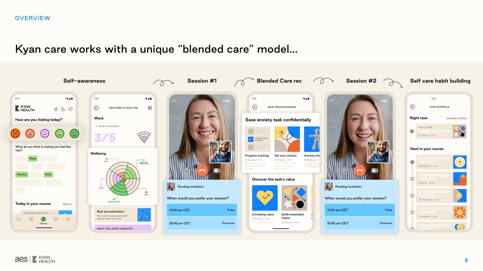 Kyan Health provides its services through a subscription-based model for enterprise clients. At the heart of Kyan’s platform is Kai, an AI-powered care navigator that connects employees to personalized resources—from crisis support to certified coaching and mental health counseling. The platform operates as a “trusted third party,” offering users confidential access to tools with end-to-end encryption. No personal data is shared with employers; only aggregated insights are used to enhance workplace conditions while safeguarding privacy.