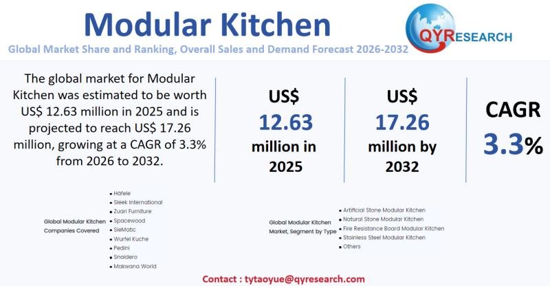 The global market for Modular Kitchen was estimated to be worth US$ 12.63 million in 2025 and is projected to reach US$ 17.26 million, growing at a CAGR of 3.3% from 2026 to 2032.