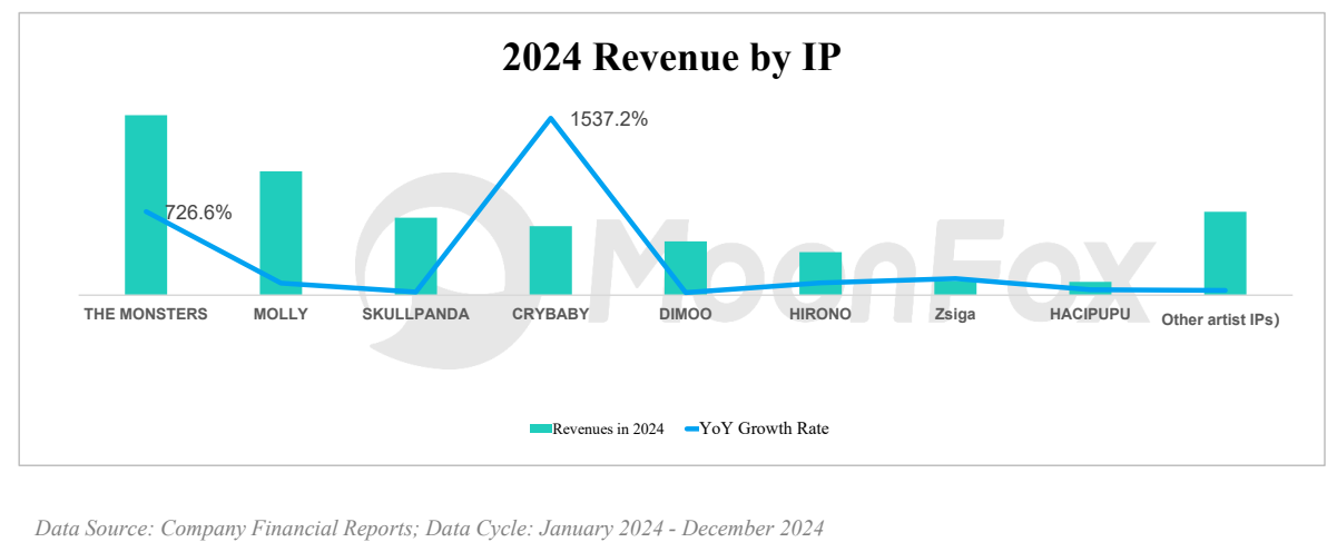 Continued development of core IPs: Classic IPs such as MOLLY and DIMOO continue to iterate with new themes, while emerging IP THE MONSTERS (which includes LABUBU) has expanded beyond static pop toys and figurines into plush accessories and interactive companions through diverse product designs and performances featuring park character interactions. These efforts have strengthened emotional bonds with fans, driving a remarkable 726.6% YoY revenue growth in 2024.