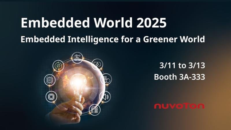 Hsinchu, Taiwan – February 28, 2025 – Nuvoton will emphasize embedded intelligence for a greener world at Embedded World 2025. The company will show MPU and MCU silicon solutions for AI, EV charging, batteries, industrial applications, and various other power, motor, and human interface applications. Embedded World is from 11-13 March 2025 in Nurnberg, Germany. Attendees can find Nuvoton in Hall 3A, booth 333.