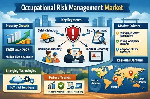 The Occupational Risk Management market refers to the systems, services, and technologies used by organizations to identify, evaluate, and mitigate risks associated with workplace hazards. Occupational risk management programs aim to protect employees from injuries, illnesses, and safety incidents that may occur in work environments. These risks may include physical hazards, chemical exposure, equipment-related dangers, ergonomic risks, and environmental conditions that affect worker safety. Organizations implement risk management frameworks that include hazard identification, safety training programs, incident reporting systems, and compliance monitoring processes.